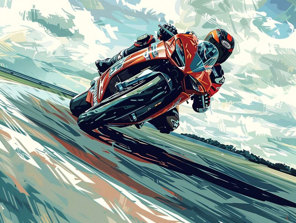 💠This stunning diamond painting kit turns the excitement of orange sports cycling races into reality! The full diamond design features a dynamic track scene of a tilted sports bike, ensuring that every inch of the canvas shines with bright resin diamonds.💠
