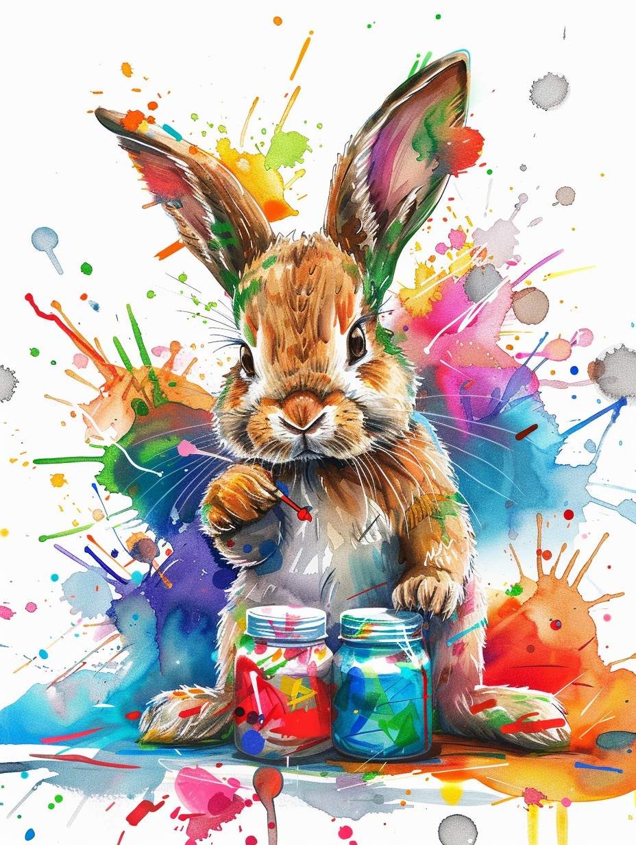 💠Shine with creativity with our playful rabbit diamond painting kit! This charming design captures a cute artist rabbit, covered in bright paint splashes, ready to create at any time. Every sparkling diamond turns this whimsical scene into reality.💠