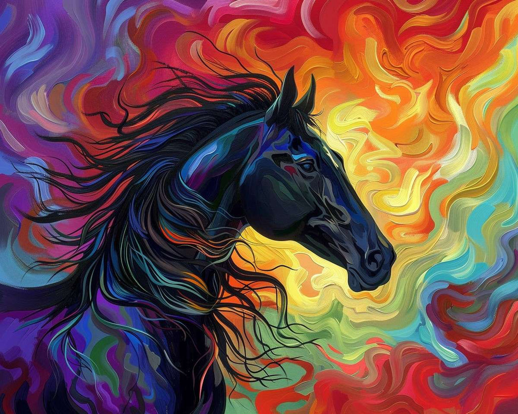 💠Each shimmering resin diamond captures the fiery, swirling hues of the horse’s dynamic backdrop and the sleek depth of its coat, creating a dazzling, light-catching piece that blends bold equine beauty with unrivaled sparkle.💠